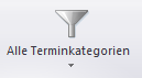Der Kalender bietet direkt im Menüband folgende Filterschaltfläche in der Gruppe "Sichtbarkeit" an, mit deren Hilfe Sie entscheiden können, welche Kategorien der Termine Sie anzeigen wollen.