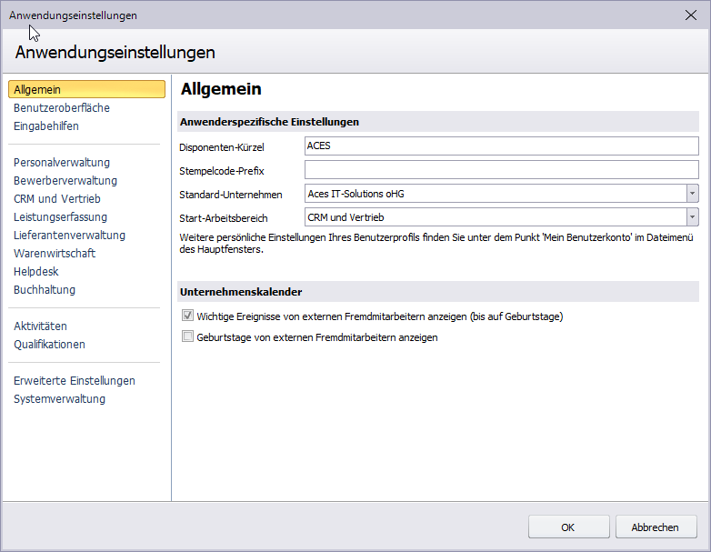 - Personalverwaltung - Einstellungen für das Modul Personalverwaltung